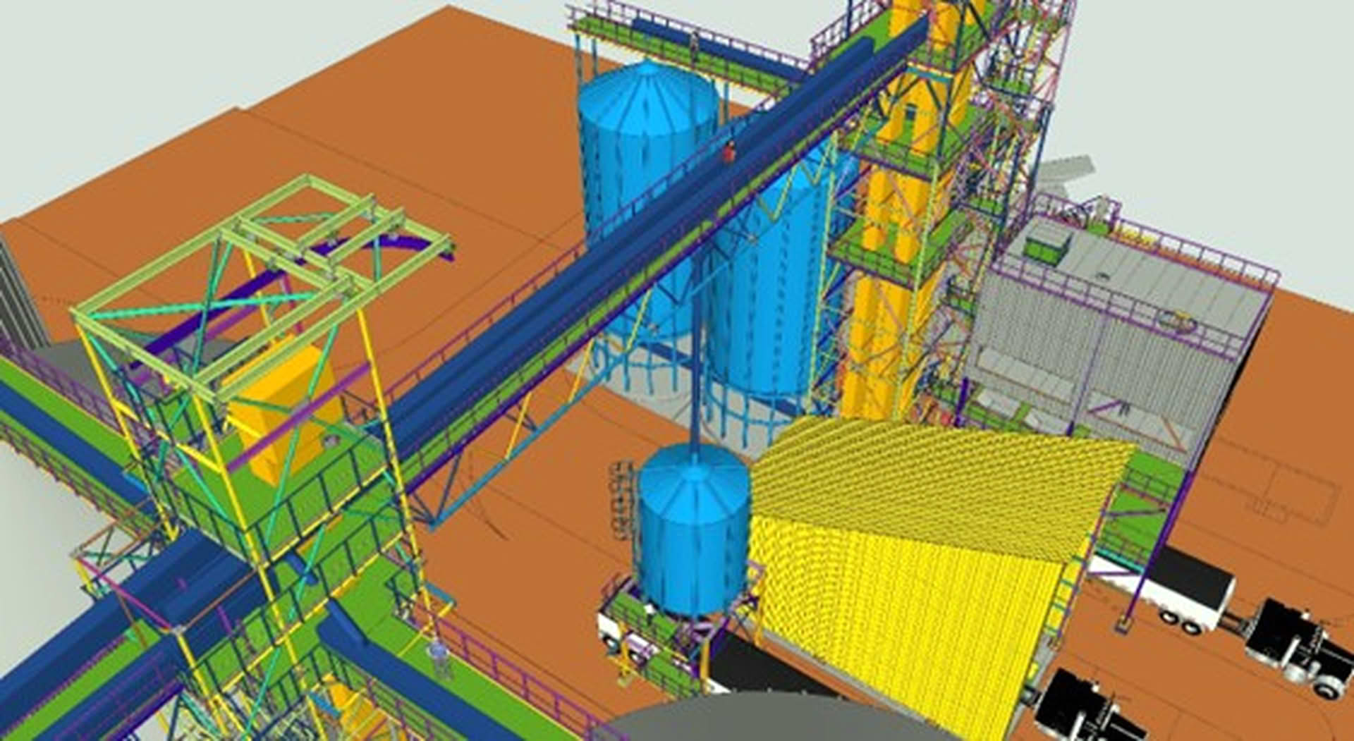 В подходе ПСК «ЧИФ» инженерная работа начинается с анализа сценариев работы элеватора в течение сезона, а не с расположения отдельных конструкций. Фактически создается модель будущего рабочего дня: сколько машин одновременно прибывает, какие культуры поступают, какая часть зерна требует сушки, как быстро формируются экспортные партии.