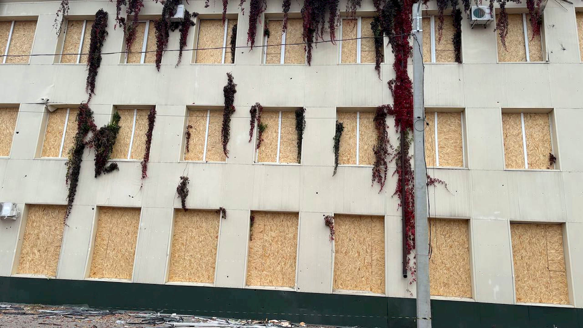 Пошкоджено лікарню, гаражні бокси, 19 транспортних засобів і приміщення цивільного підприємства.