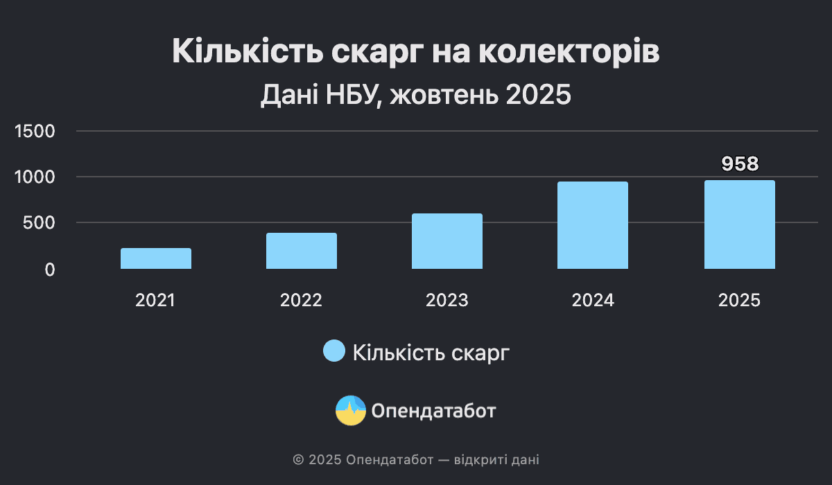 3101 жалоба на деятельность коллекторских компаний поступила в НБУ с момента вступления в силу нового закона о коллекторской деятельности в 2021 году. Более 60% этих жалоб поступило только за последние два года.