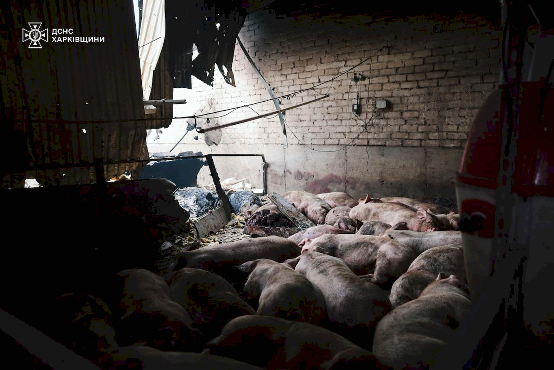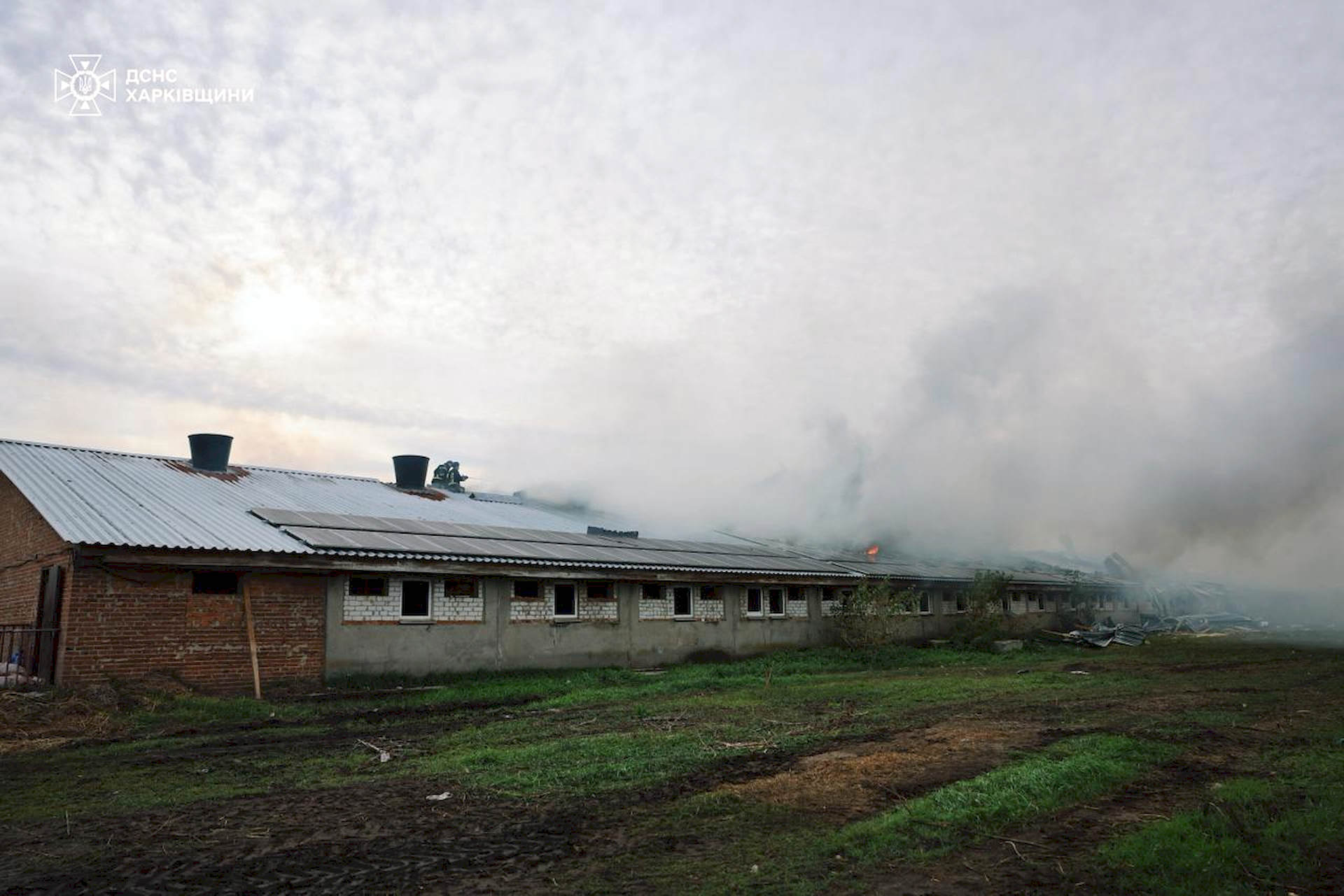 Пожар, вызванный российским обстрелом, был масштабным, горели 8 зданий для содержания свиней на общей площади 13600 квадратных метров.