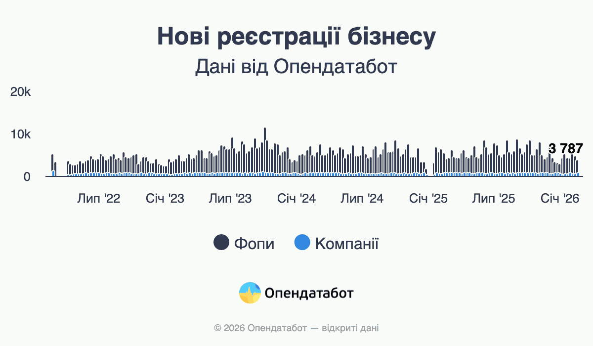За підсумками 2025 бізнес вийшов на плато: 5 579 нових фоп і 717 компаній на тиждень.
