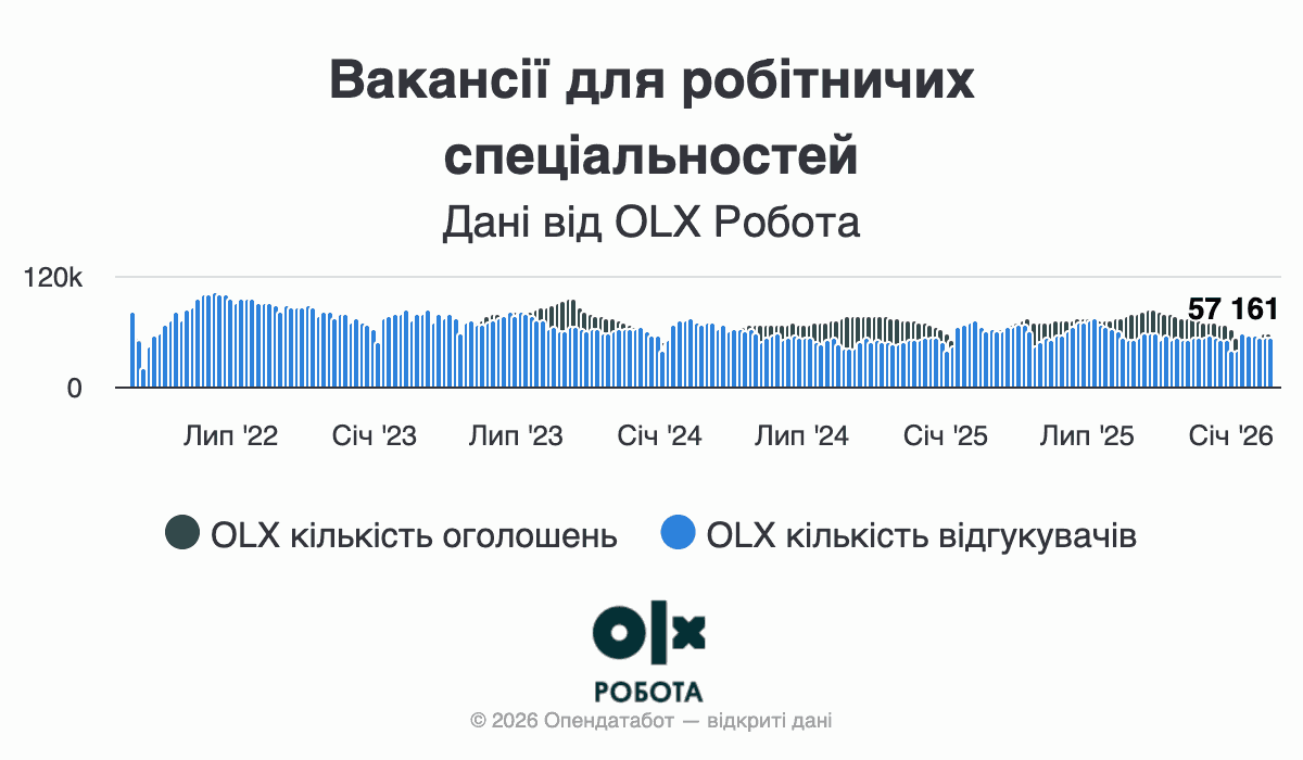 В OLX зазначають, що напередодні повномасштабної війни високий попит на кандидатів був у категоріях роздрібної торгівлі та логістики/доставки. Також значну кількість оголошень фіксували у сферах будівництва/облицювальних робіт та виробництва/робітничих спеціальностей.