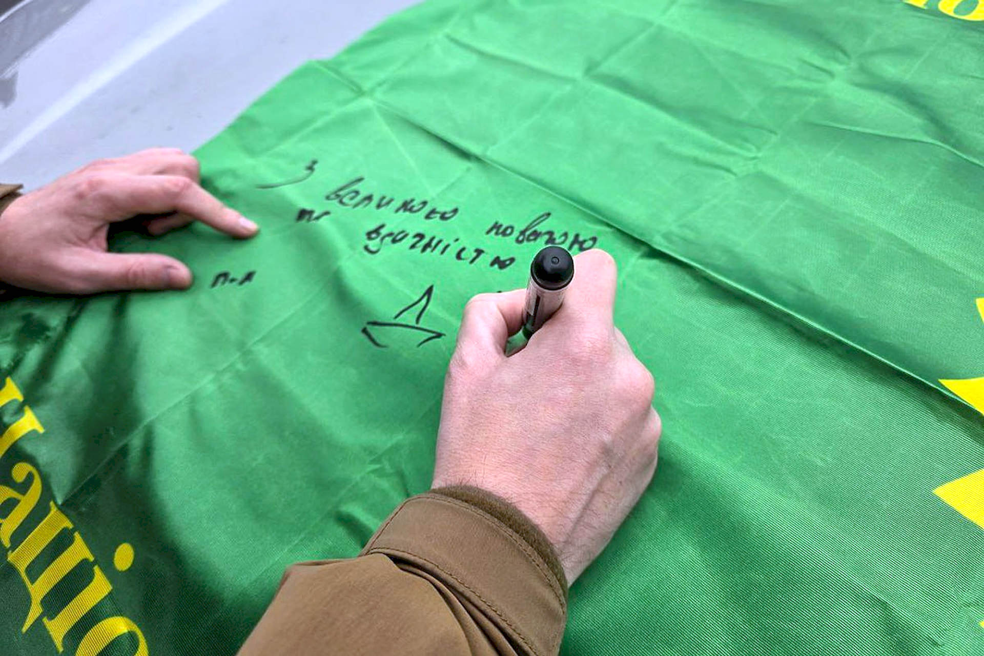 Зустрітися з волонтерами та особисто подякувати їм за допомогу приїхав командир 5 Слобожанської бригади «Скіф» НГУ полковник Дмитро Клодчик, який урочисто вручив нашим друзям з Литви почесні відзнаки – медалі бригади «За патріотизм та співпрацю», грамоти та іменний прапор Слобожанських «Скіфів».