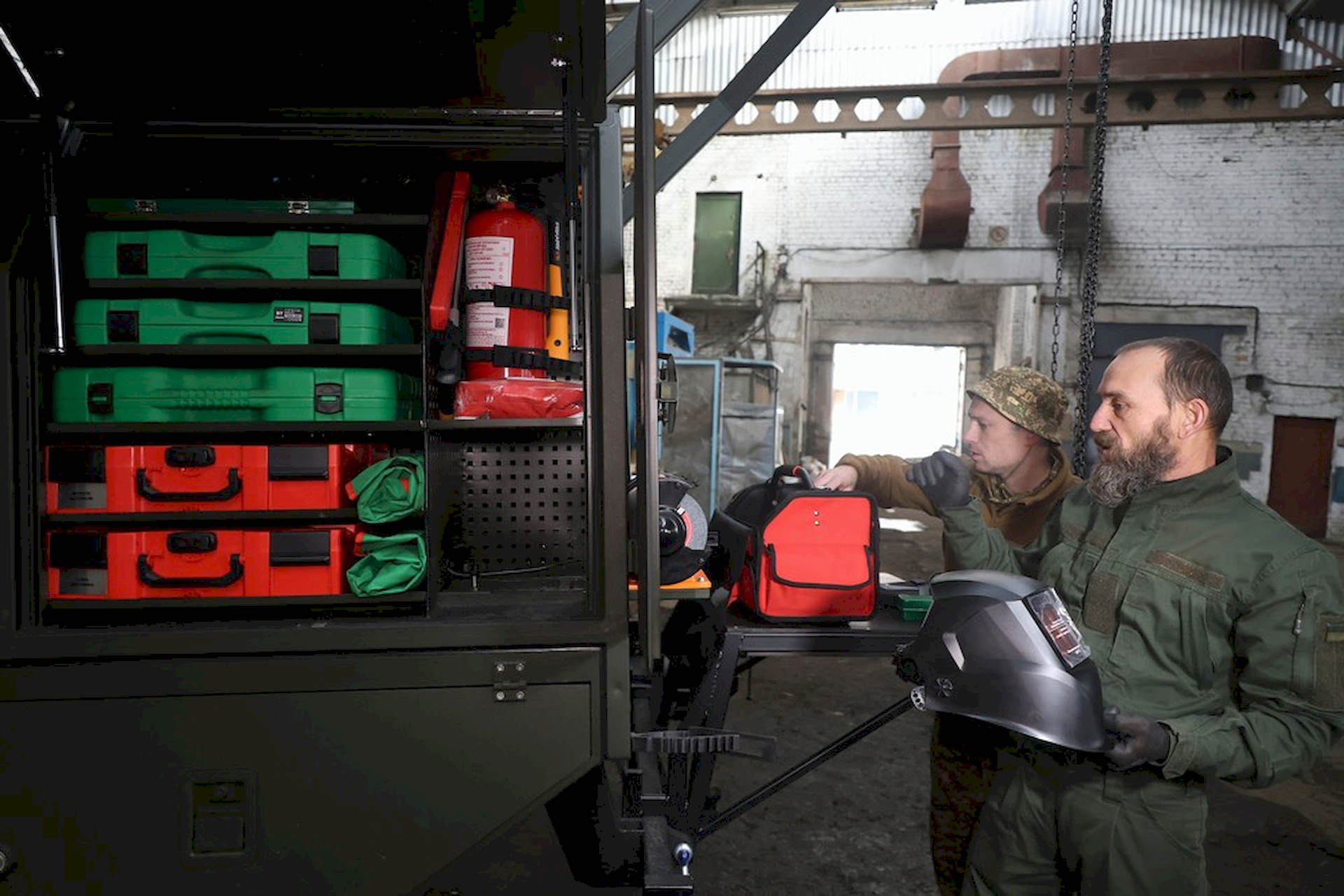 «Якщо ми раніше їздили до машини, знімали колеса, везли до нас у ППД, коли все ремонтували, то зараз ми можемо виїхати прямо туди й зробити це на місці. Можна прямо на місці зробити ремонт автомобільної шини. Також можна виконати зварювальні роботи», - пояснює Слобожанський гвардієць Станіслав на позивний «Юріч».