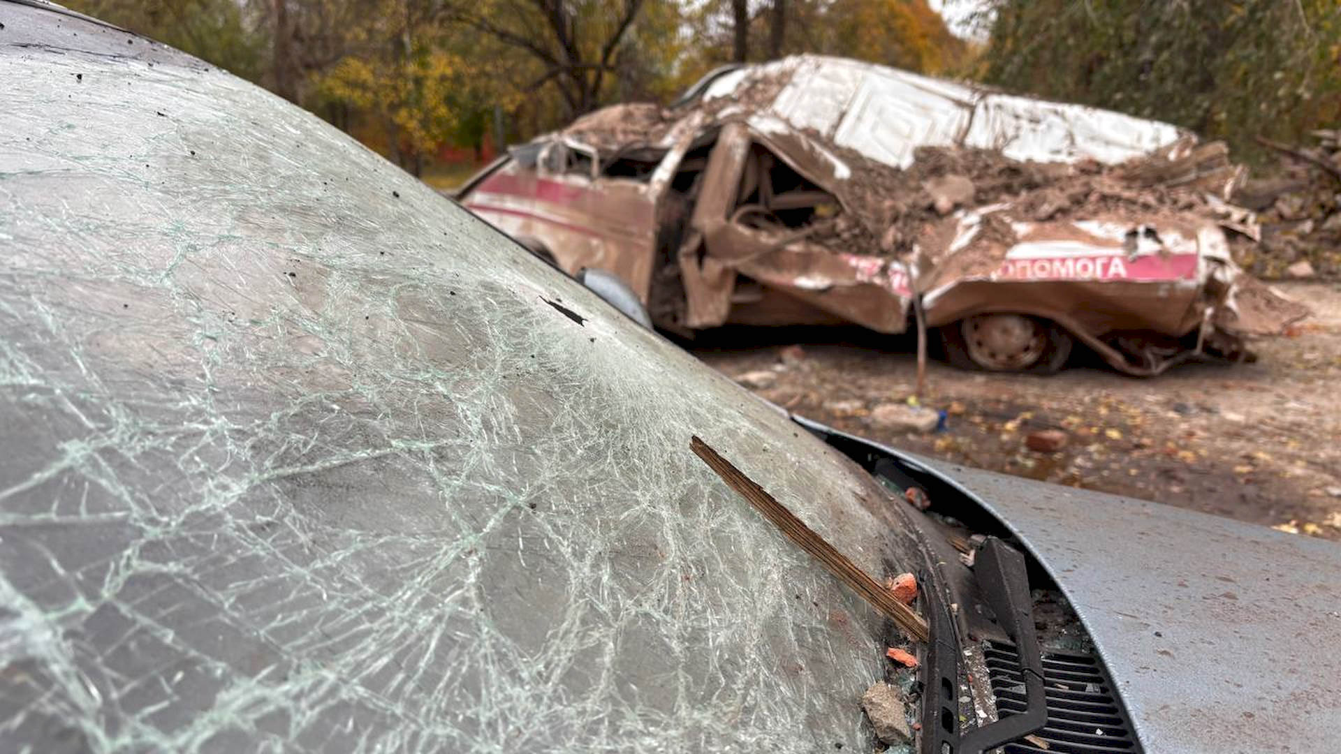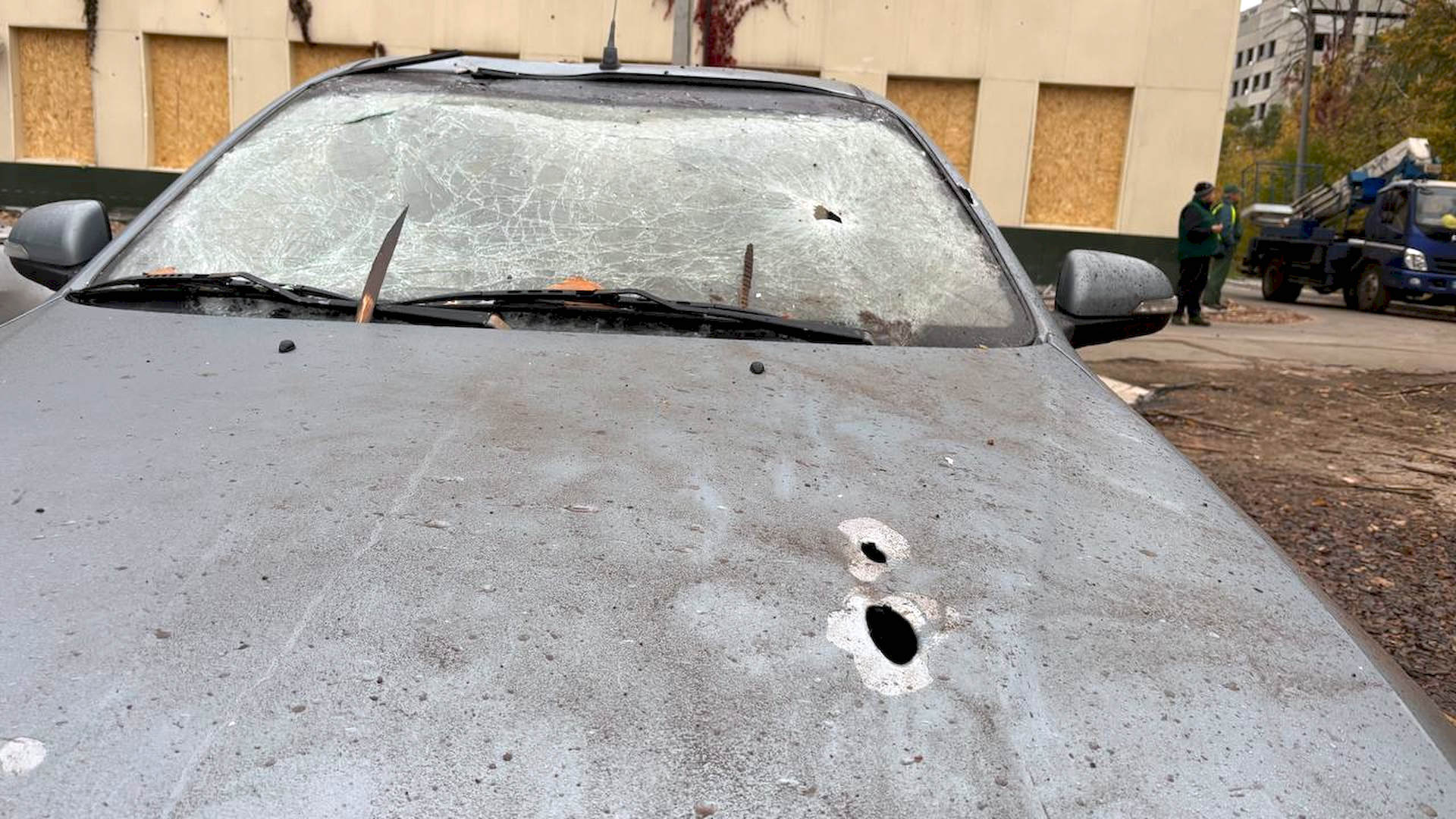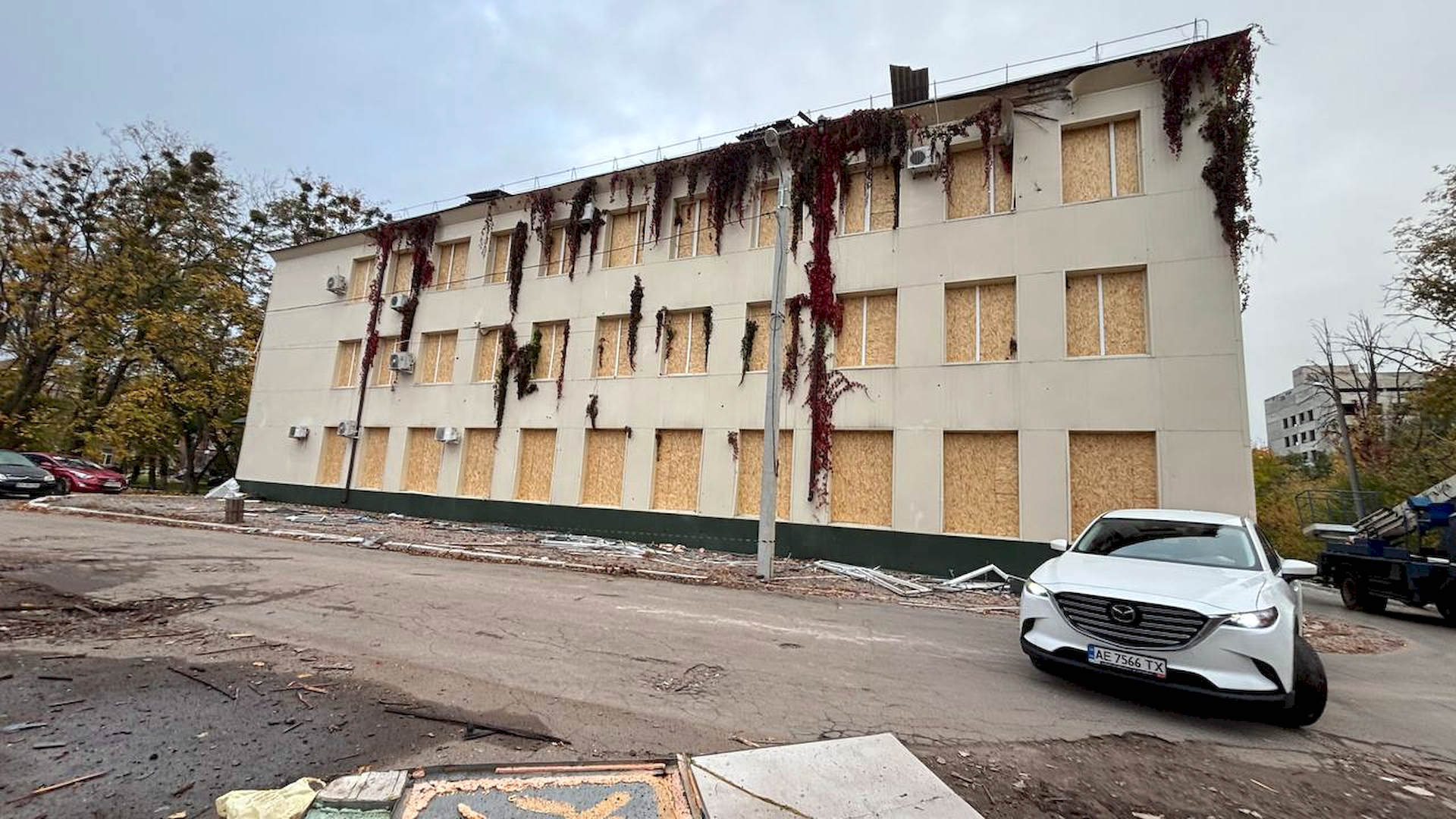 Пошкоджено лікарню, гаражні бокси, 19 транспортних засобів і приміщення цивільного підприємства.